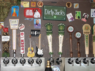 Taps at Green Man Brewery, AKA Dirty Jack’s, in Asheville |